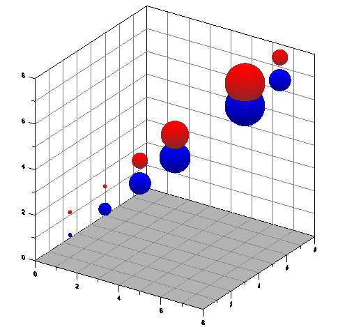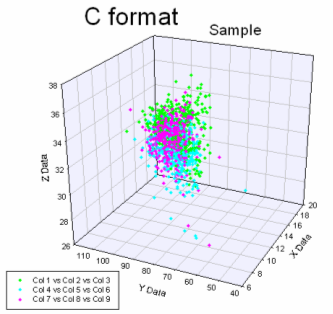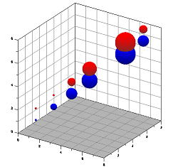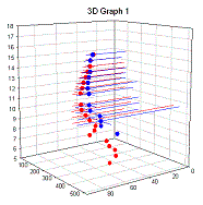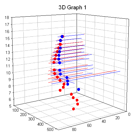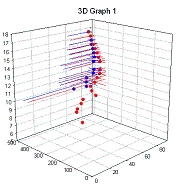 ■シグマプロットグラフ (Sigma plot) SD付き3D散布図。左右の図は、角度を変えたもの